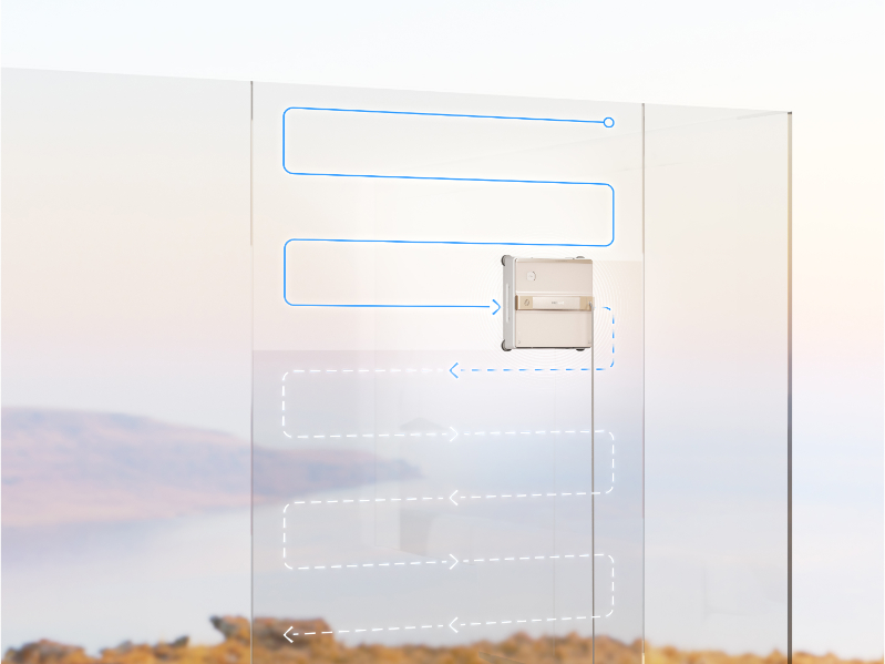 Jeśli czyszczenie zostanie przerwane, C1 wznawia pracę dokładnie w miejscu, w którym ją zakończył. Po skończeniu mycia robot automatycznie wraca do punktu startowego, co ułatwia jego zdjęcie z szyby i zwiększa bezpieczeństwo użytkowania.