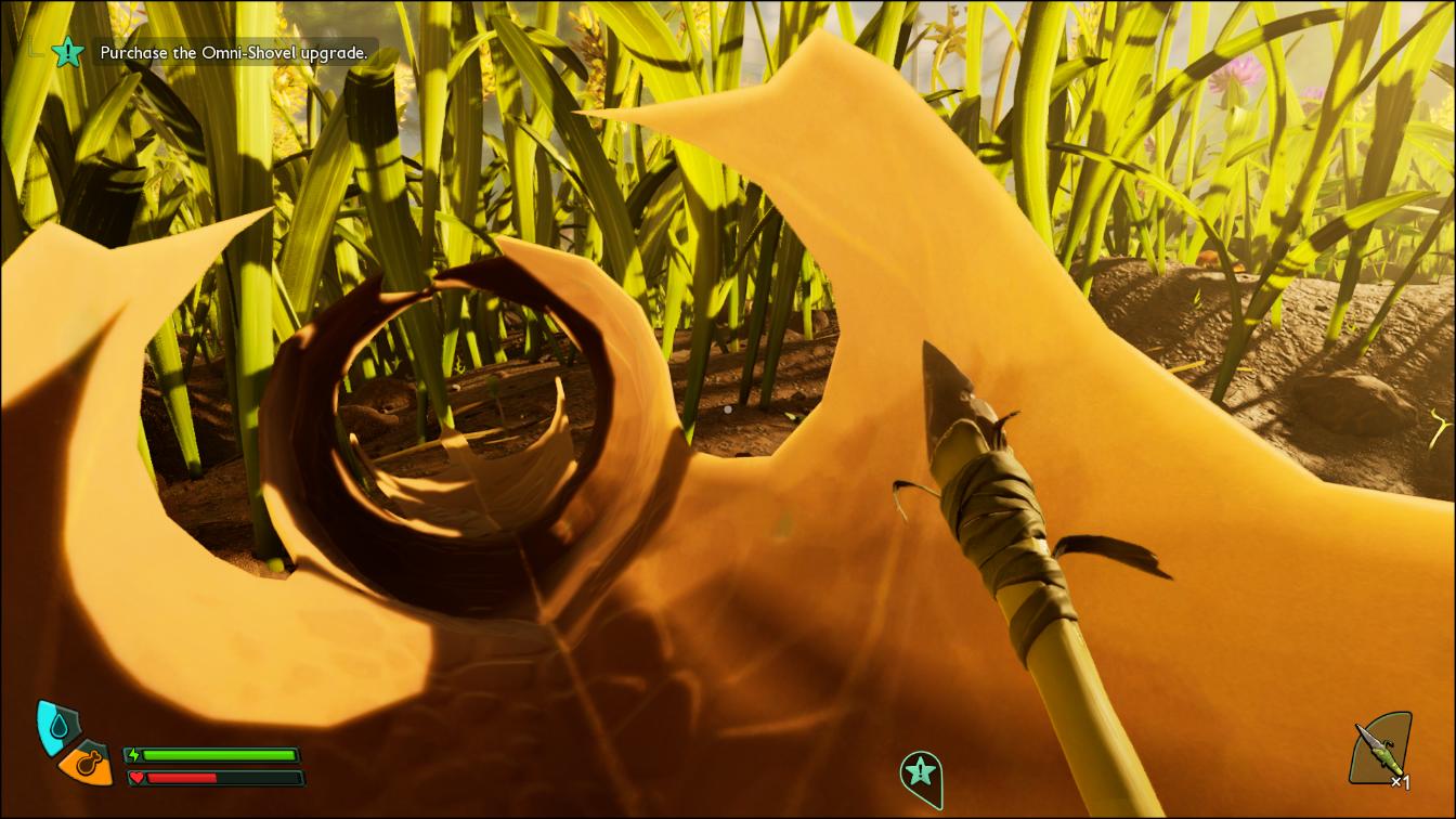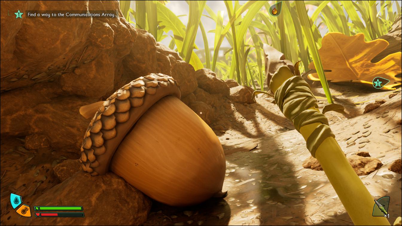 Jak już wspomniałam, jest to moje pierwsze zderzenie nie tylko z samym survivalem, które starannie omijam, ale również z tą serią. Kiedy dotarło już do mnie, że jesteśmy dość niewielkich rozmiarów, spotkałam na swojej drodze mrówkę. Ta, chcąc nie chcąc, wydawała się większa od postaci. Jakież było moje zdziwienie, kiedy insekty, których zapewne nie jestem w stanie dostrzec na trawie gołym okiem, atakują mnie i zadają solidne obrażenia (tak, mam na myśli te czerwone robaczki). Minęłam również prześliczną biedronkę, która uporczywie za mną biegała. Na szczęście udało mi się przed nią uciec, gdyż zobaczyłam nad nią pasek zdrowia podzielony na kilka kawałków. Tak, uznałam ją za jakiegoś mini bosa, którego zostawię na późniejszą godzinę.