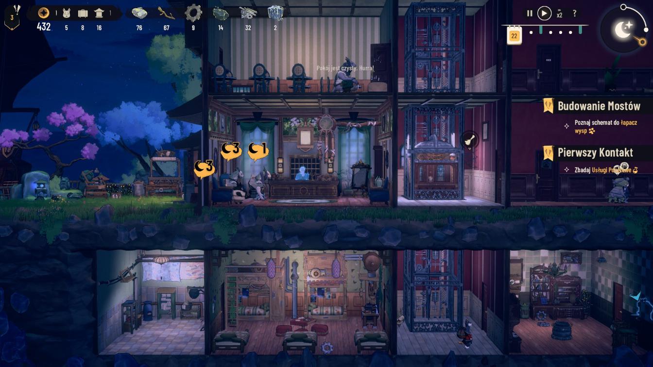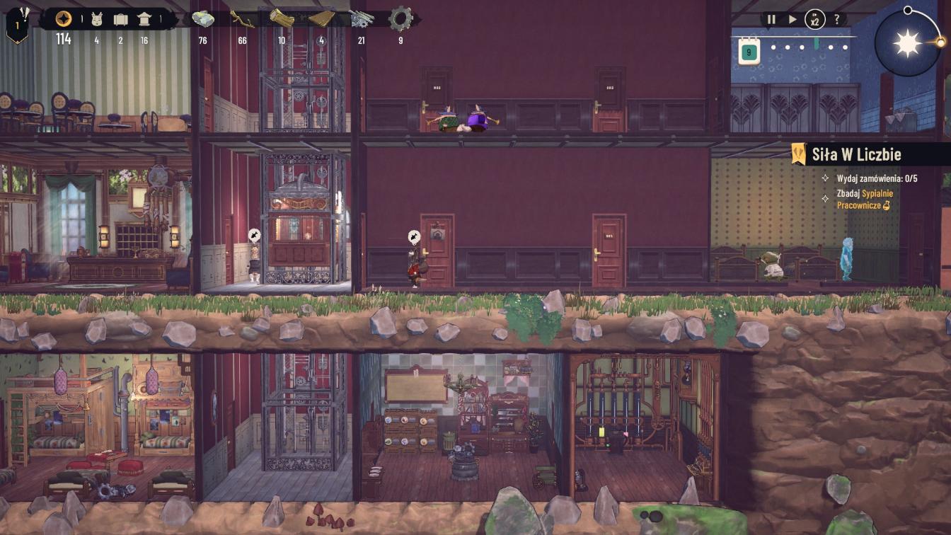 Sama budowa pomieszczeń staje się z czasem kluczowym elementem rozgrywki, ponieważ musimy zacząć tworzyć coraz więcej funkcjonalnych przestrzeni dla gości. Proces ten opiera się na mechanice modułowej, co oznacza, że możemy projektować pokoje zarówno nad ziemią, jak i pod nią. Do budowy pomieszczeń niezbędne są różne zasoby, takie jak drewno, które można zdobywać w trakcie gry samym rąbaniem drewna przez pracowników. Następnie korzystamy z możliwości meblowania i dekorowania pokoi, co wpływa na komfort gości i ich zadowolenie.