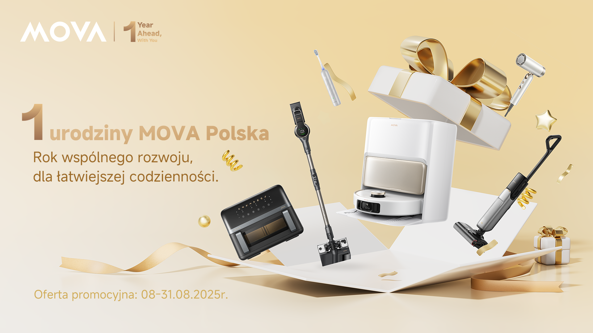 MOVA świętuje rok w Polsce, oferując rekordowe rabaty do 46% na inteligentne roboty sprzątające, odkurzacze, urządzenia kuchenne i kosiarki.