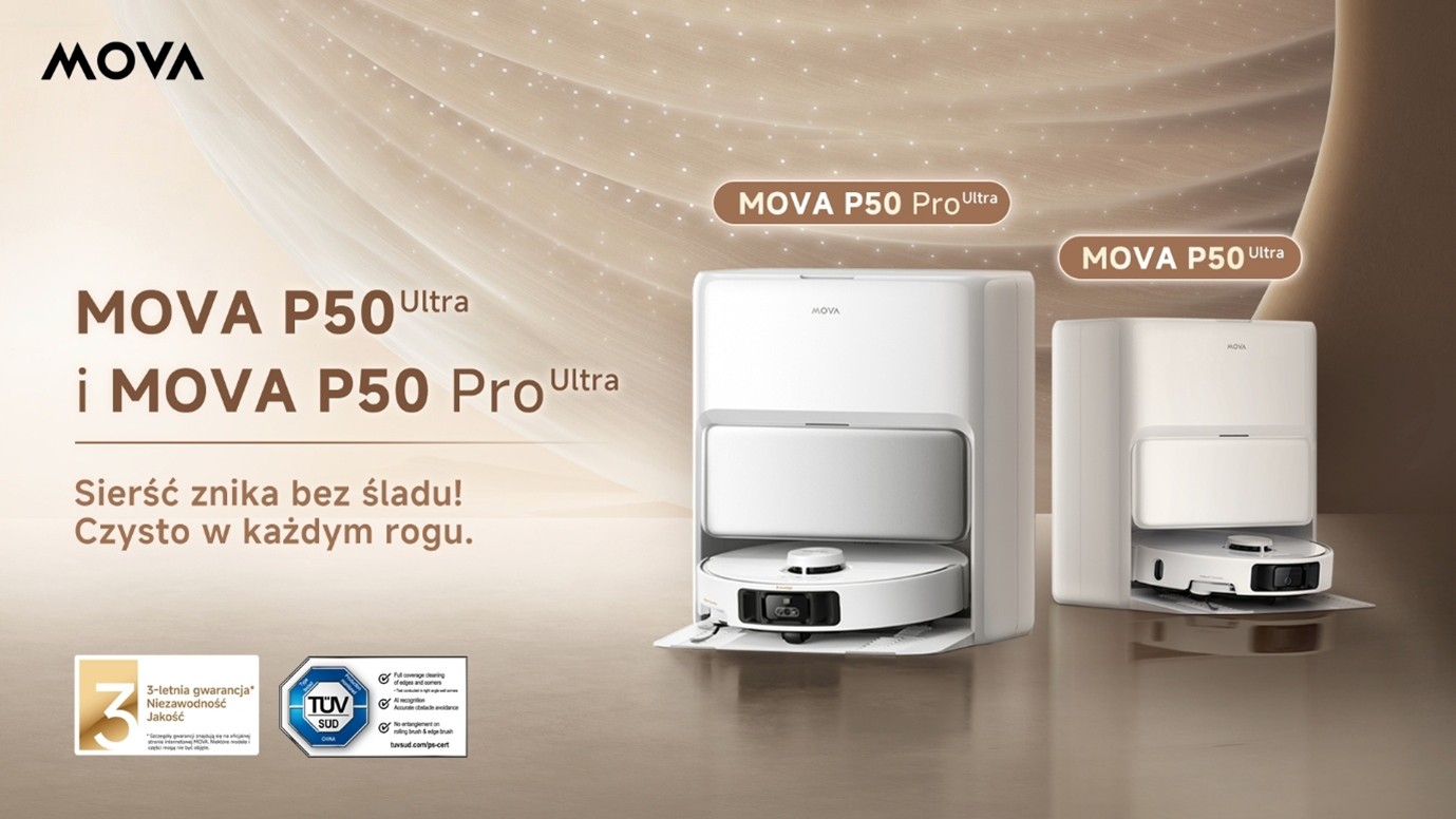 MOVA oferuje obecnie najbardziej zróżnicowaną linię robotów odkurzająco-mopujących na polskim rynku. W ofercie znajdują się modele dopasowane do różnych budżetów i potrzeb. Portfolio obejmuje osiem nowoczesnych urządzeń. Od ekonomicznego E20 w cenie 869 PLN po flagowy V50 Ultra Complete z technologią StepMaster™ za 5999 PLN. Dodatkowo wszystkie modele objęto urodzinowymi promocjami, które sięgają nawet 46% rabatu z okazji pierwszej rocznicy obecności marki MOVA w Polsce.