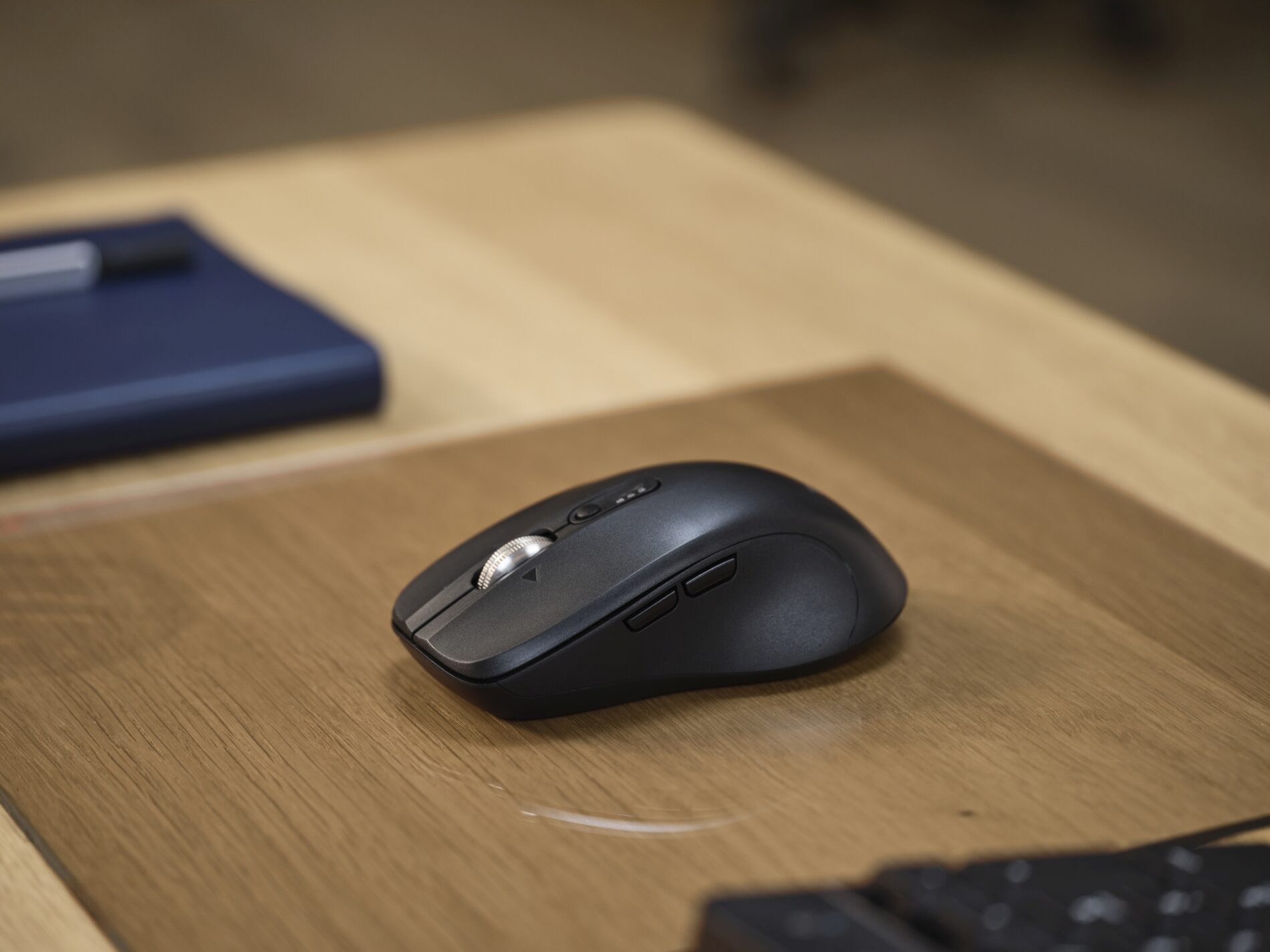 Mysz świetnie sprawdza się przy pracy wielozadaniowej. Można ją podłączyć do maksymalnie trzech urządzeń – przez odbiornik USB-A 2,4 GHz lub dwa kanały Bluetooth. Wystarczy nacisnąć dedykowany przycisk, by szybko przełączyć się między sprzętami. Dzięki temu praca przebiega bez zakłóceń. Co więcej, Ferro działa całkowicie bezprzewodowo i oferuje czas pracy na baterii nawet do 19 miesięcy. Ogranicza to konieczność częstej wymiany baterii i pomaga utrzymać porządek na biurku.