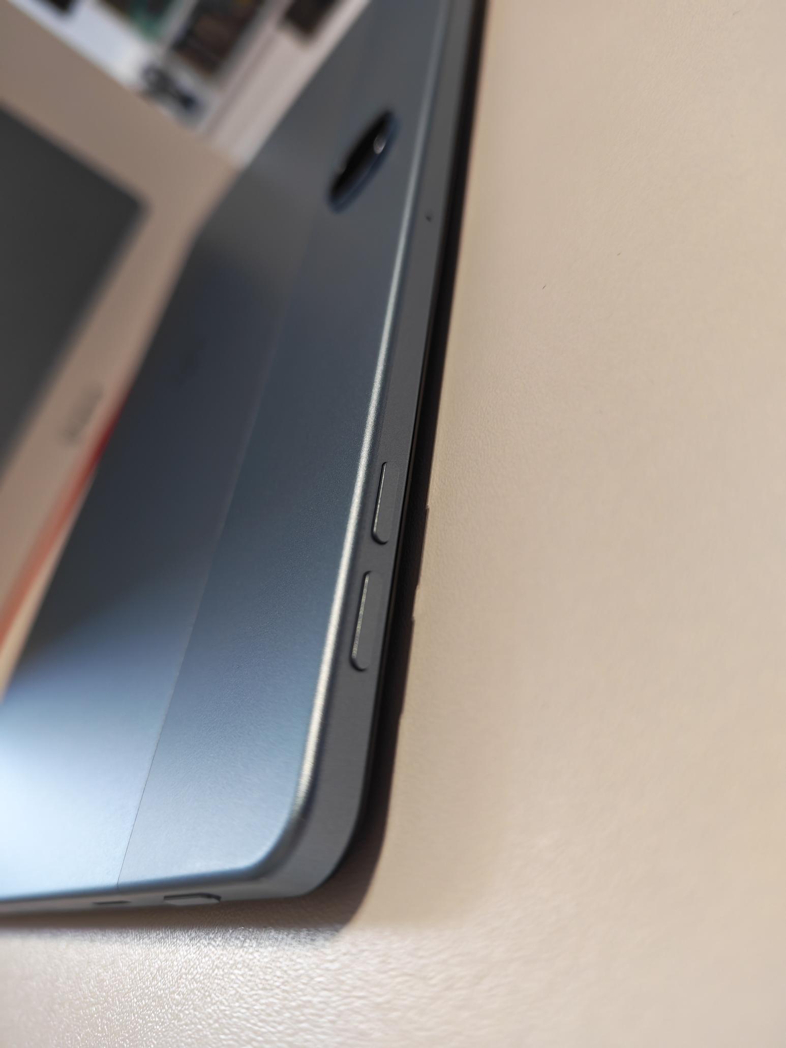 Minusem dla mnie jest umiejscowienie przedniego aparatu. Jest on na wprost, ale na dłuższej krawędzi. Naturalnym układem tabletu dla mnie jest trzymanie go w pionie, więc odblokowanie ekranu każdorazowo wymagało obracania urządzenia. Niemniej samo odblokowanie za pomocą rozpoznawania twarzy działa poprawnie.
