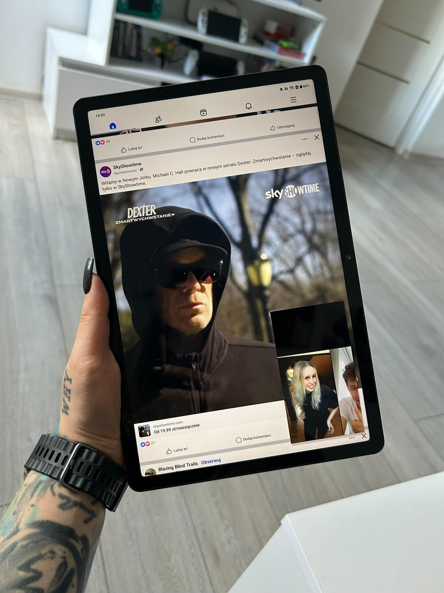 Tablet ma baterię o pojemności 9340 mAh i obsługuje szybkie ładowanie 33 W. Cztery głośniki z certyfikatem Hi-Res Audio oferują czysty i przestrzenny dźwięk. Aparaty o rozdzielczości 5 Mpx z przodu i z tyłu nie imponują parametrami, ale dobrze sprawdzają się w wideorozmowach i prostych zdjęciach. Czy takie parametry wystarczają w codziennym użytkowaniu? Zerknijmy na pozostałe.