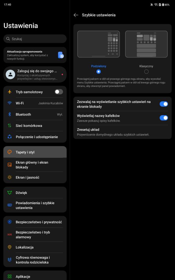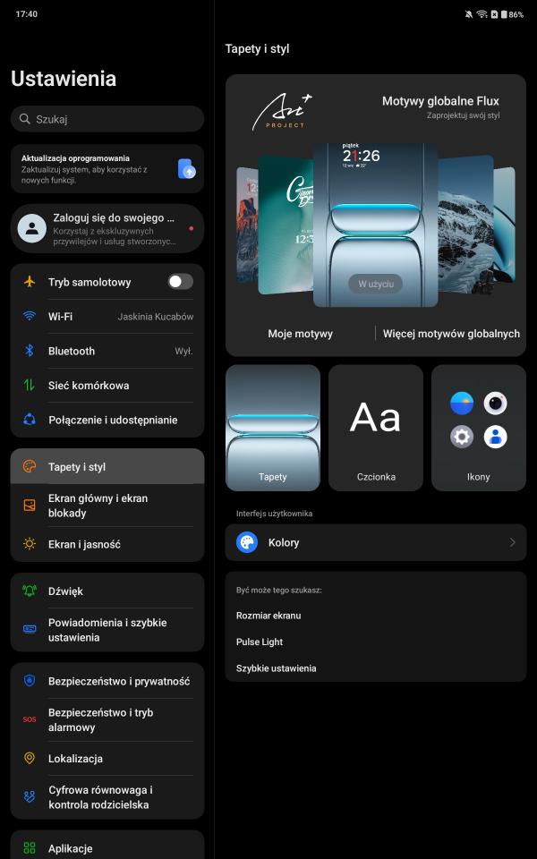 Tablet to taka kopia smartfonów. Nawet ich konfiguracja przebiega podobnie do tej, którą musimy przejść po włączeniu po raz pierwszy nowego telefonu. Podobnie jest i w tym przypadku. OnePlus Pad Lite daje użytkownikom wiele możliwości personalizacji. System działa na OxygenOS 15 opartym na Androidzie 15, więc wszystko jest bardzo proste w obsłudze. Interfejs pozwala swobodnie zmieniać wygląd ekranu startowego i blokady. Można ustawić różne style zegara, wybrać rozmyte tapety lub efekty głębi oparte na sztucznej inteligencji. Dodatkowo możemy samodzielnie ustawić kolorystykę i głębie wyświetlanych obrazów.