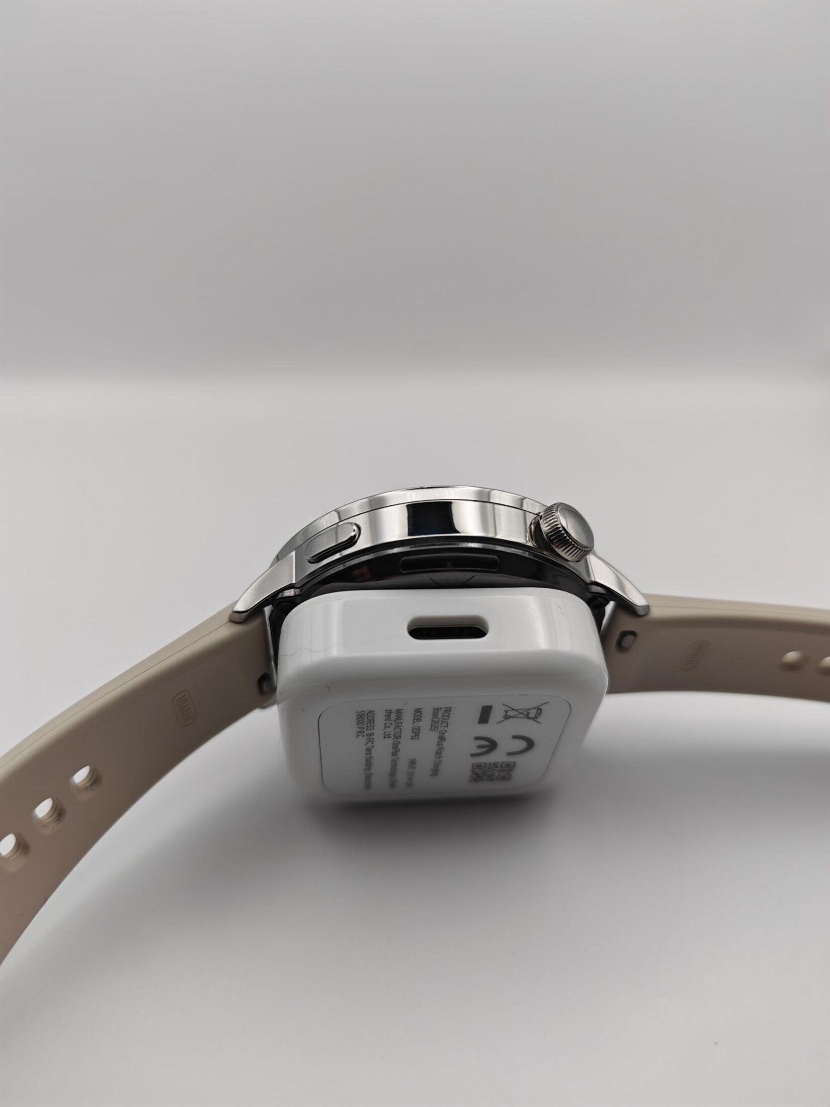 • OnePlus Watch 3 43mm w kolorze białym, dostępny również w kolorze czarnym, opaski w obu wersjach wykonano fluoroelastomeru;
