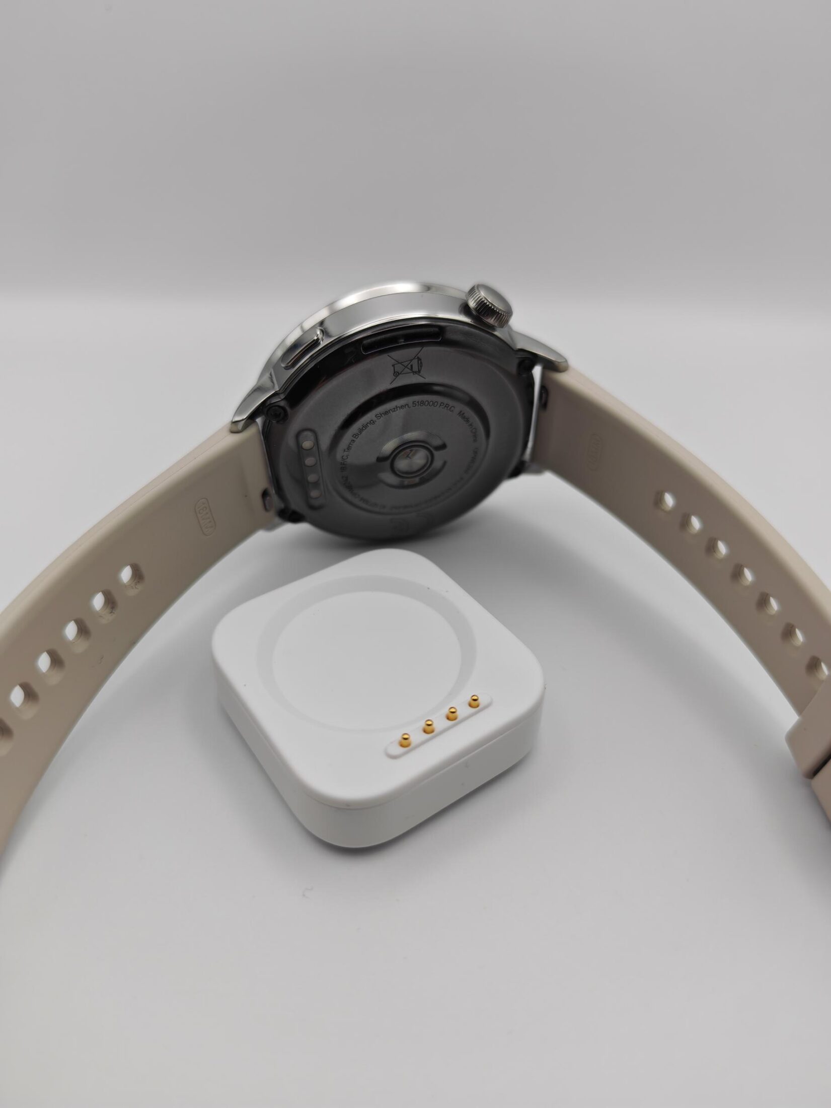 Mocno przywykłam już do kształtu, jaki prezentuje sobą mój egzemplarz HUAWEI WATCH FIT 4 Pro. Nic więc dziwnego, że po dokonaniu zamiany mój nadgarstek przeżył lekki szok. Miał na to wpływ fakt, iż tarcza jest okrągła i znacznie smuklejsza, a sam zegarek jest bardzo lekki i wręcz niewyczuwalny na ręce.