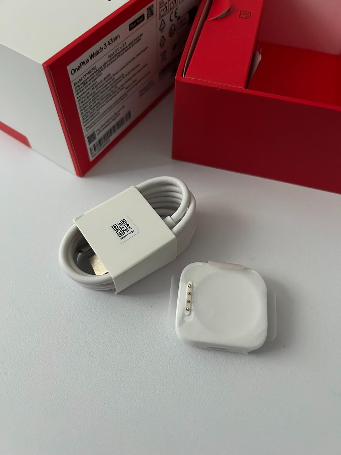 To, co już doskonale znam, jeśli chodzi o markę OnePlus to czerwone akcenty widoczne nie tylko w szablonach na urządzeniach, ale również w akcesoriach. Tym razem zegarek OnePlus Watch 3 43mm nie posiada czerwonego kabla ładującego, jednak wnętrze opakowania nadrabia ten aspekt. Zegarek nie wymaga wielu dodatkowych elementów, zatem we wnętrzu pudełka znajdziemy: