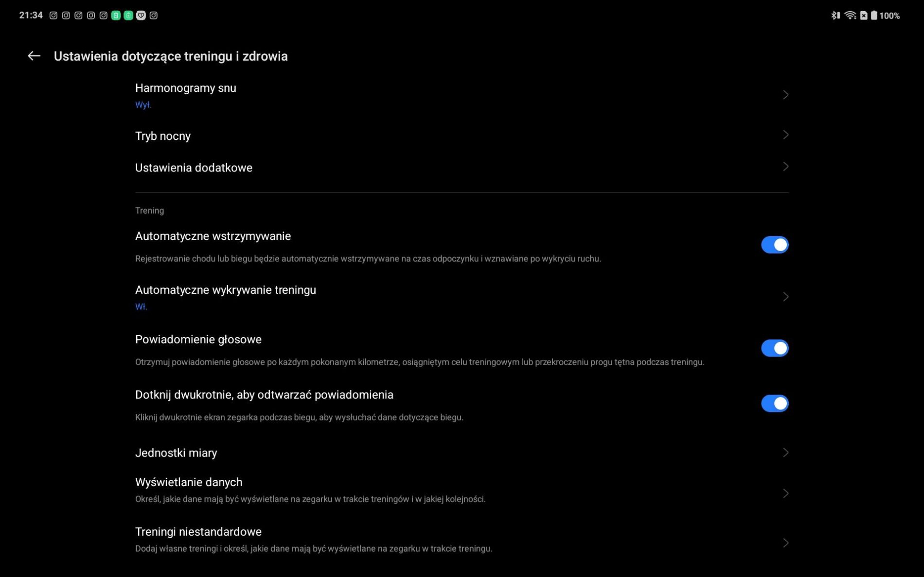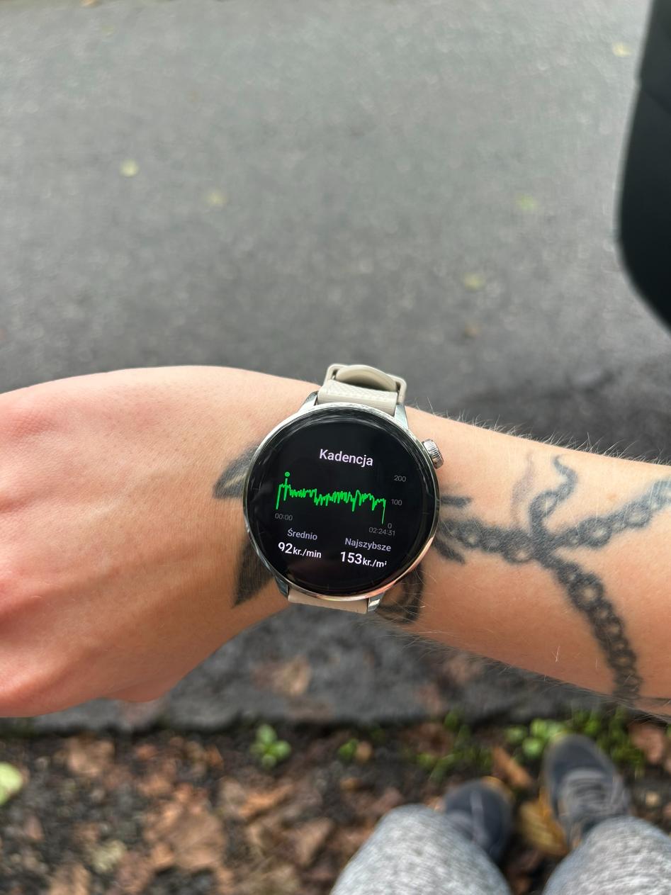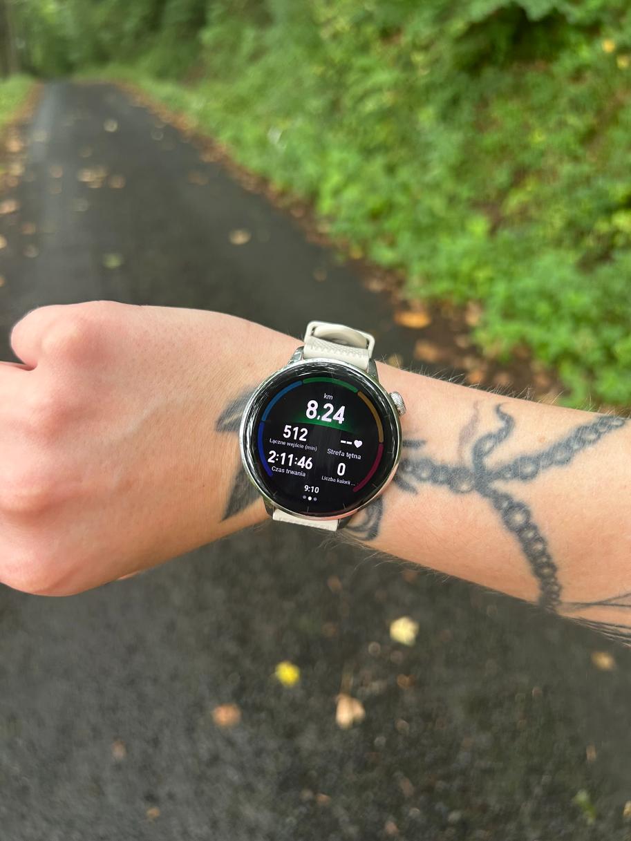 Na moją niekorzyść ani pogoda, ani później zdrowie nie pozwoliło mi na nadmierne sprawdzenie, co dokładnie potrafi zegarek – choć na szczęście udało się to kilka razy. Zegarek obsługuje ponad 100 trybów sportowych, więc każdy znajdzie tu swoją ulubioną aktywność fizyczną. W trybie biegania z monitoruje strefy spalania tłuszczu oraz efektywność treningu. Dzięki zaawansowanym metrykom, takim jak czas kontaktu z podłożem i równowaga, pozwala on na poprawę techniki i zwiększenie wydolności.
