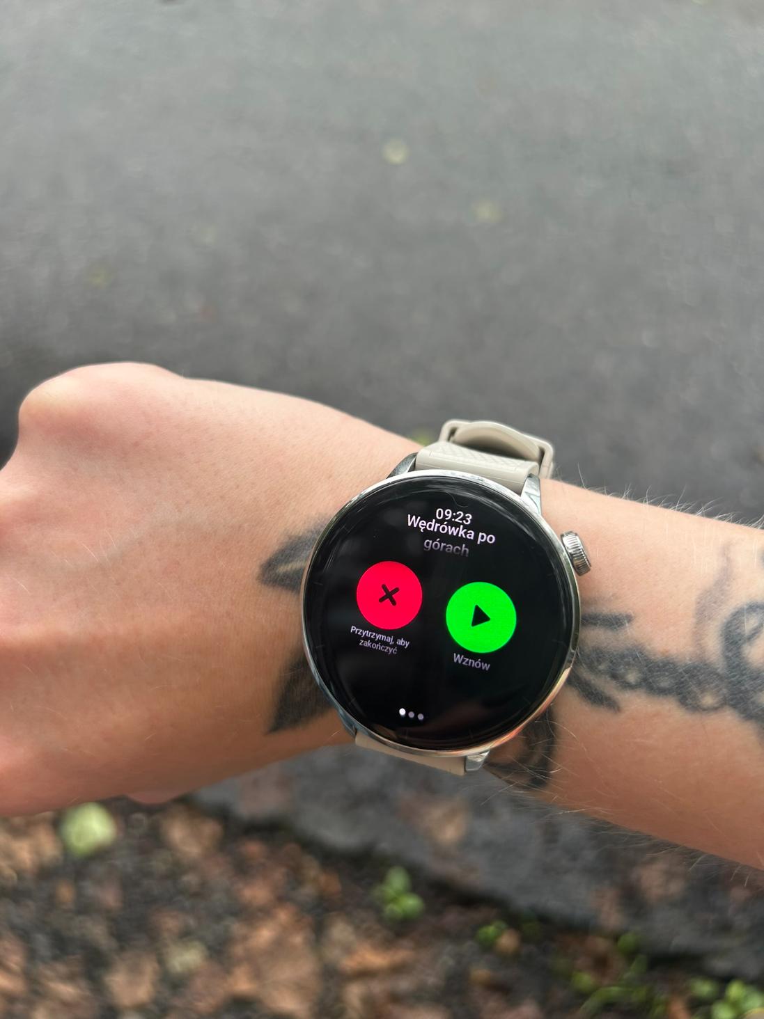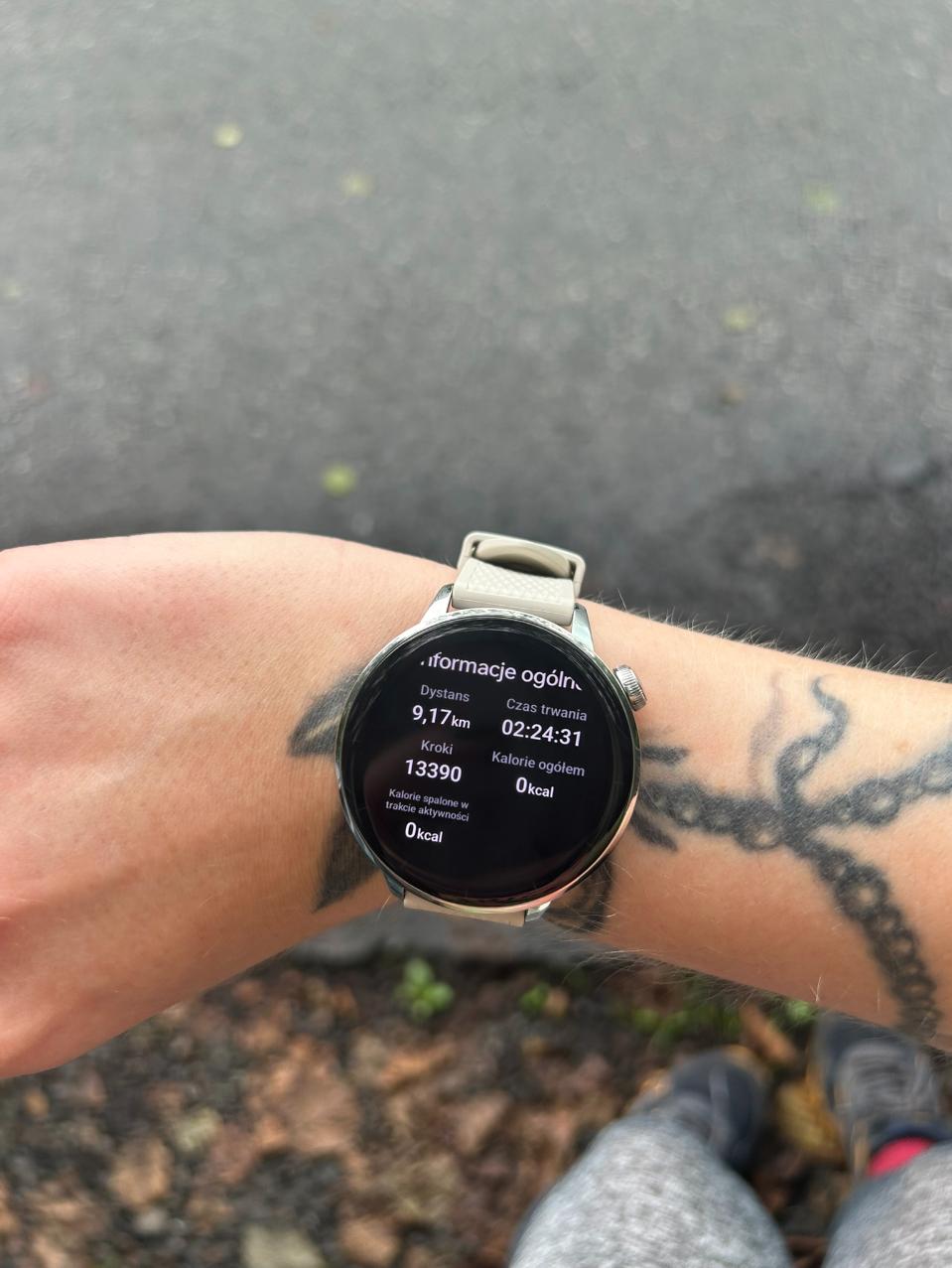 Nie śmiejcie się ze mnie za bardzo, ALE… W pewną sobotę ruszyłam w góry i stwierdziłam, że porównam, co potrafi OnePlus Watch 3 43mm i mój HUAWEI. Droga minęła świetnie, zdążyłam wrócić z gór przed deszczem i… I dopiero wtedy zauważyłam, że zegarek OnePlus oczywiście kroki policzył, ale oprócz tego reszta parametrów wskazywała 0. No tak, nie pomyślałam, że na prawym nadgarstku mam czarny tatuaż, a tatuaże, jak powszechnie wiadomo, mogą zakłócać poprawne działanie czujników na zegarkach. Może i smartwatch kroki zliczył, ale co się działo oprócz tego, to wie tylko mój zegarek, który był na ręce lewej.