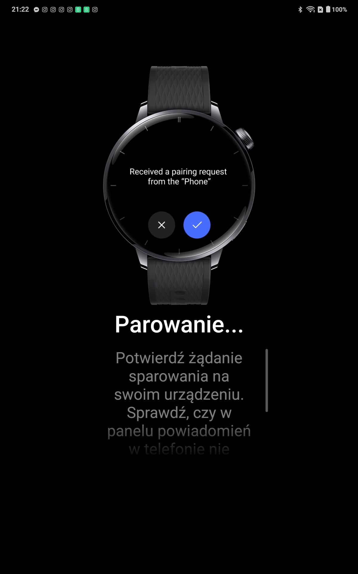 Żałujcie, że nie mieliście okazji zobaczyć mojej mimy, jak przez ok. 40 minut (w piątek po pracy!) zastanawiałam się, dlaczego zegarek nie chce się połączyć z moim telefonem (iPhone 14 Plus). Jakież było ostatecznie moje ogromne zdziwienie, kiedy dotarł do mnie fakt, że zegarek nie współpracuje z systemem iOS. Nie ukrywam, że nie jestem fanką rozwiązań, które ograniczają możliwość korzystania z produktów, ale niestety nie mam na to wpływu. Początkowo więc wpadłam na pomysł, by zegarek połączyć z tabletem OnePlus Pad Lite. Kilka dni później uratował mnie HONOR 400 Pro (jego recenzja również niebawem na stronie). Mogłam w końcu w pełni skorzystać z zegarka, no bo przecież nie pójdę z tabletem pod pachą na spacer albo do sklepu. Trochę niewygodnie.