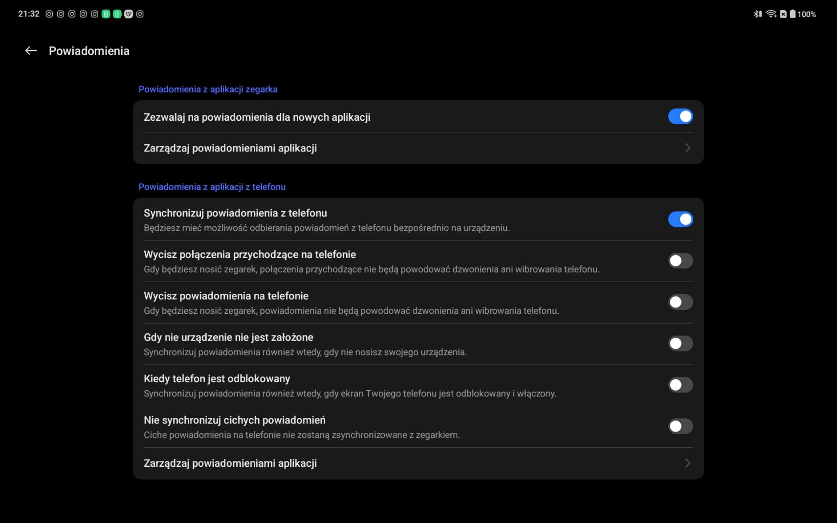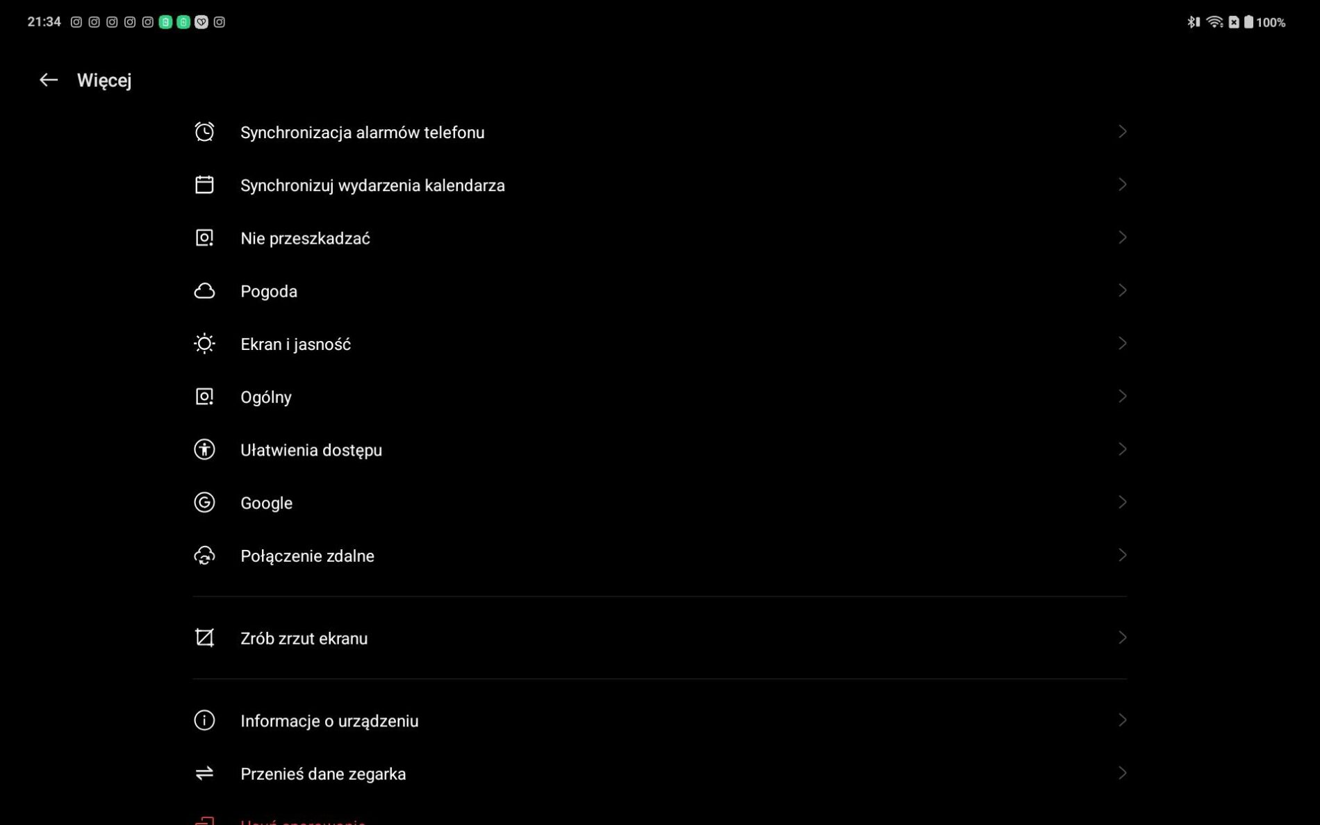 Ustawienia, obsługa zegarka