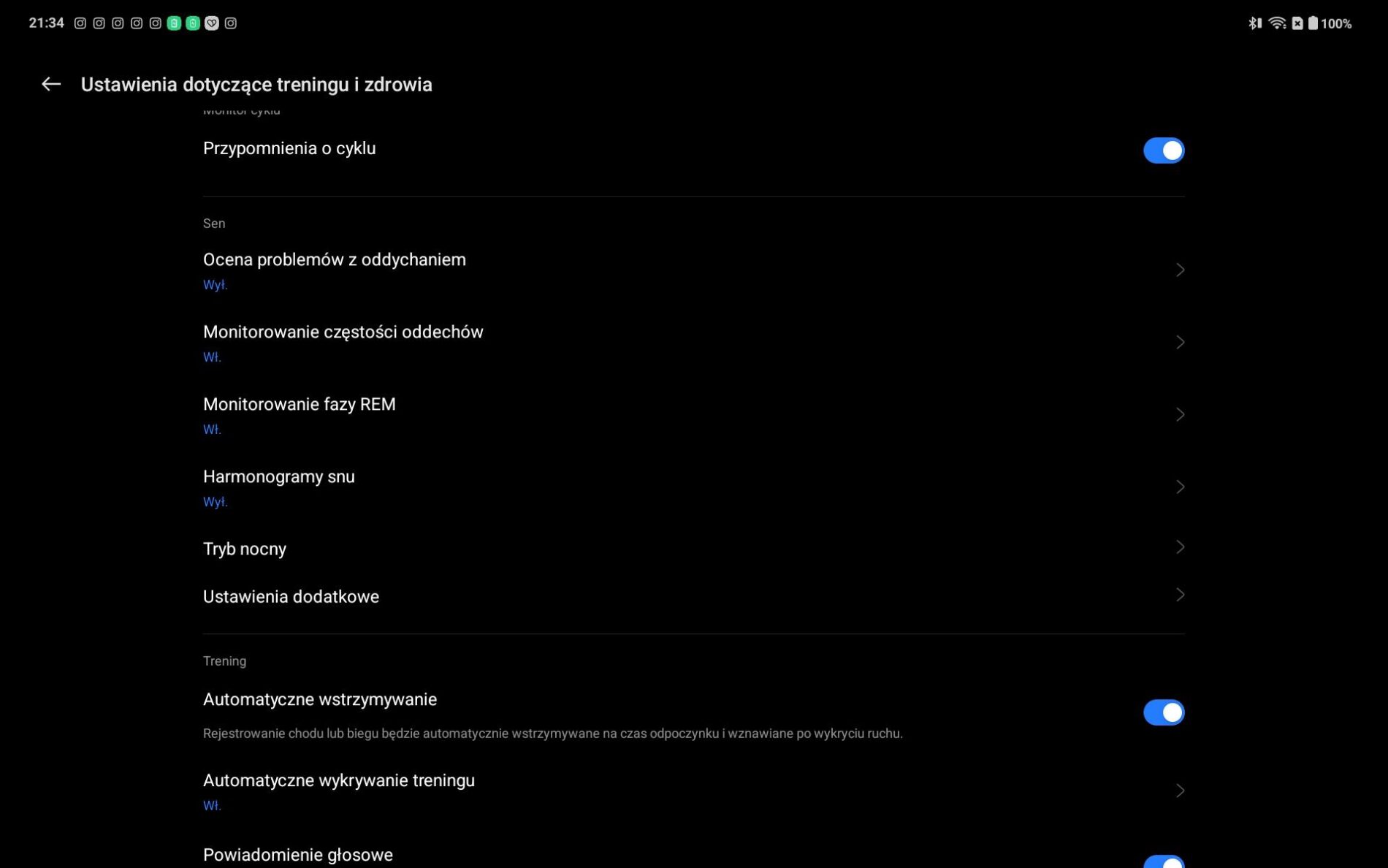Podczas snu zegarek rejestruje najważniejsze wskaźniki, między innymi jakość wypoczynku, oddech, poziom natlenienia krwi oraz ewentualne chrapanie. Każdego ranka pojawia się klarowny raport, który krok po kroku pokazuje, co wpływa na regenerację i co można poprawić, by sen stawał się coraz bardziej wartościowy. W nocy czujniki śledzą także tempo oddechu, ruchy ciała oraz zmienność rytmu serca. W ciągu dnia zegarek monitoruje puls oraz saturację, zarówno w trakcie pracy, treningu, jak i chwil odpoczynku. Oprócz tego OnePlus Watch 3 43 mm wspiera monitorowanie cyklu menstruacyjnego.