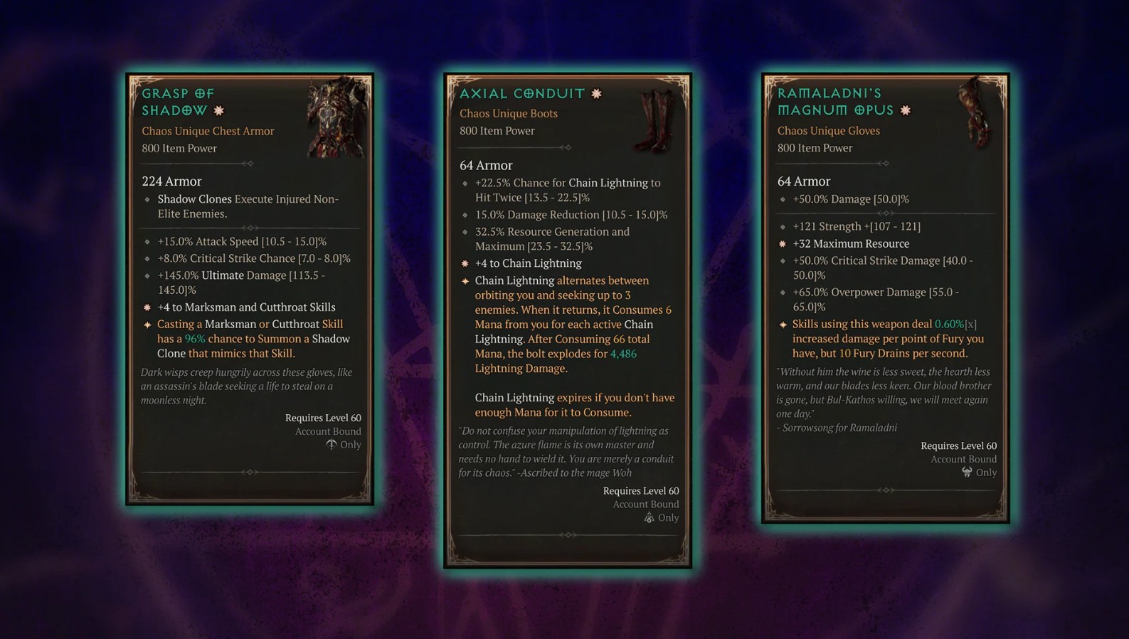 Nowa wersja unikatów nigdy nie pokrywa się z pierwotnym miejscem. Jeśli więc Migotliwe Kroki istniały jako buty, to ich wariant Chaosu pojawi się w innym elemencie ekwipunku. Każdy z tych przedmiotów wyróżnia się unikalnym kolorem nazwy, mocniejszym aspektem oraz dodatkowym afiksem. Warto jednak pamiętać, że nie można nosić standardowego unikatowego przedmiotu i jego wariantu Chaosu jednocześnie. Przykład? Pięści Przeznaczenia w formie hełmu pozwalają założyć inny zestaw rękawic i stworzyć układ afiksów niedostępny w normalnych warunkach. Sezon Piekielnego Chaosu zachęca właśnie do takiego eksperymentowania i planowania.