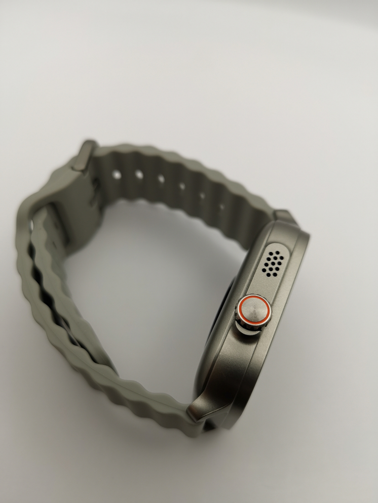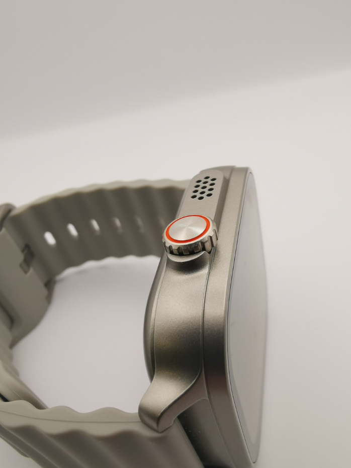 W zegarku wykorzystano szkło Panda Glass, które ma chronić wyświetlacz przed zarysowaniami. Po prawej stronie koperty znalazł się wystający moduł z głośnikiem, który imituje kształt plastra miodu. Znajduje się tu także funkcjonalna koronka, którą można zarówno sterować aplikacjami w menu i przewijać treści. Pomarańczowy pierścień wokół koronki to jedyny, przełamujący kolor element. Standardowo od spodu zobaczymy certyfikaty, czujniki i piny do ładowania.