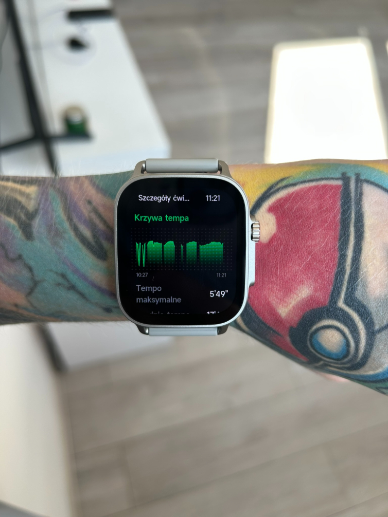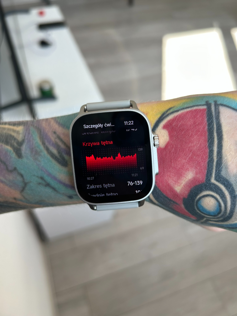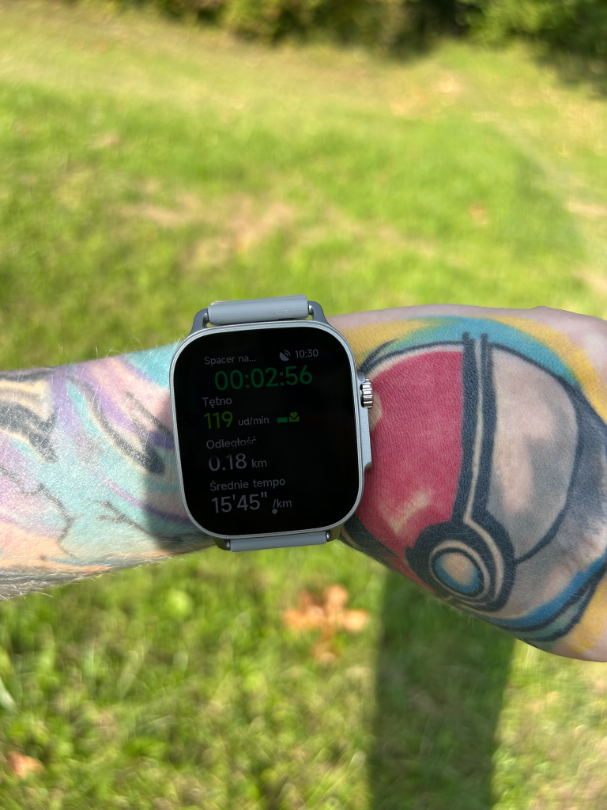Wracając, muszę Wam wspomnieć o tym, że producent nie przewidział wsparcia dla zewnętrznych aplikacji. Z mojego doświadczenia monitorowanie snu działa wyłącznie na zegarku i dane nie pojawiają się w aplikacji. Ponadto w trakcie wysiłku, posiadając znacznie wyższe tętno, zegarek zmierzył znacznie niższy parametr, niż w rzeczywistości miało to miejsce. Plastikowa obudowa jest podatna na zarysowania i lekkie obicia, co warto mieć na uwadze. Mimo to stosunek jakości wykonania, designu i funkcjonalności do ceny jest naprawdę bardzo, ale to bardzo dobry.