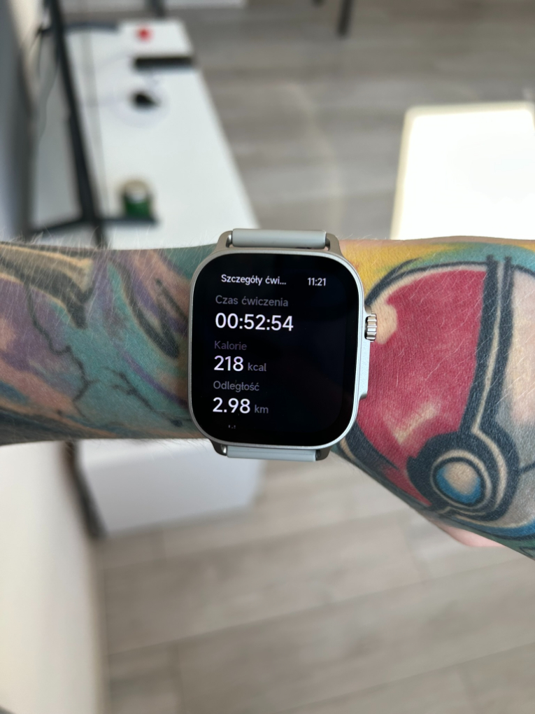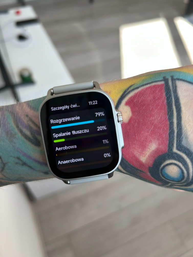 Jeśli chodzi o możliwości baterii, to jestem pozytywnie zaskoczona. Pełne naładowanie zegarka zabiera około 2,5 godziny, co może na pierwszy rzut oka lekko odstraszać, gdyż inne smartwatche oferują znacznie krótszy czas i obsługują szybkie ładowanie. W kwestii żywotności na pełnej baterii producent podaje nawet do 14 dni w normalnym trybie pracy, a przy oszczędnym użytkowaniu możliwe jest wydłużenie do około 20 dni. Według moich doświadczeń z tym zegarkiem osiągnięcie 12 dni na jednym ładowaniu z włączonymi powiadomieniami jest jak najbardziej możliwe. Byłam w szoku, sprawdzając stan baterii po pierwszych 5 dniach użytkowania.
