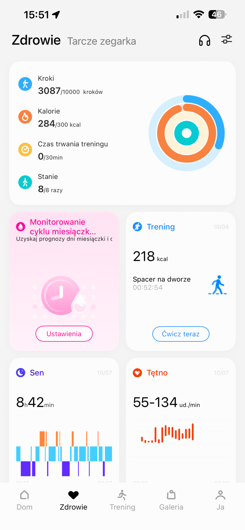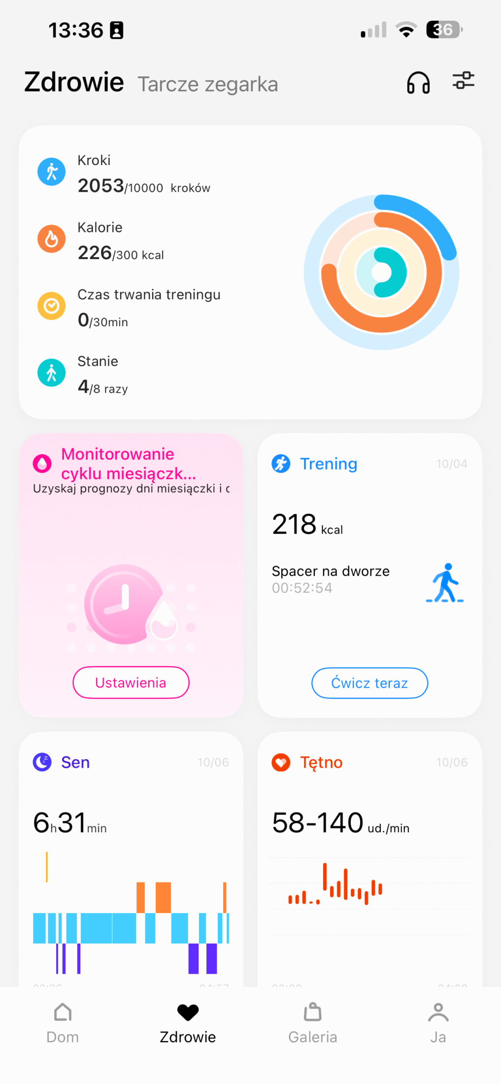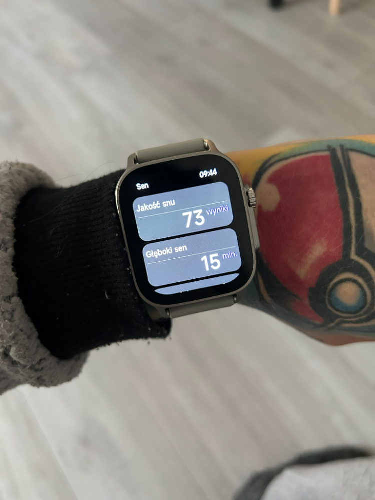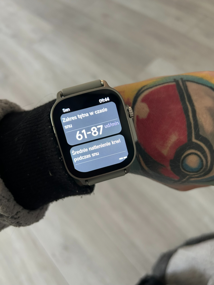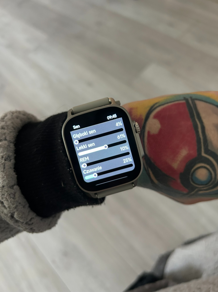 Tu pojawiła się niemała zagwozdka. O ile sam zegarek codziennie udostępniał mi dane dotyczące snu, tak w aplikacji były one… całkowicie niewidoczne. Dane z zegarka nie importowały się do aplikacji przez cały czas posiadania go na testach. Nie wiem, czy to kwestia tego, że korzystałam z niej na iPhonie czy po prostu jakiś inny, wewnętrzny problem. Niemniej nie mogłam dokonać analizy, ponieważ dostęp miałam tylko do snu z danego dnia. Na początku myślałam, że może po tygodniu jakoś się to zaktualizuje. Niestety nic takiego się nie stało, a szkoda.