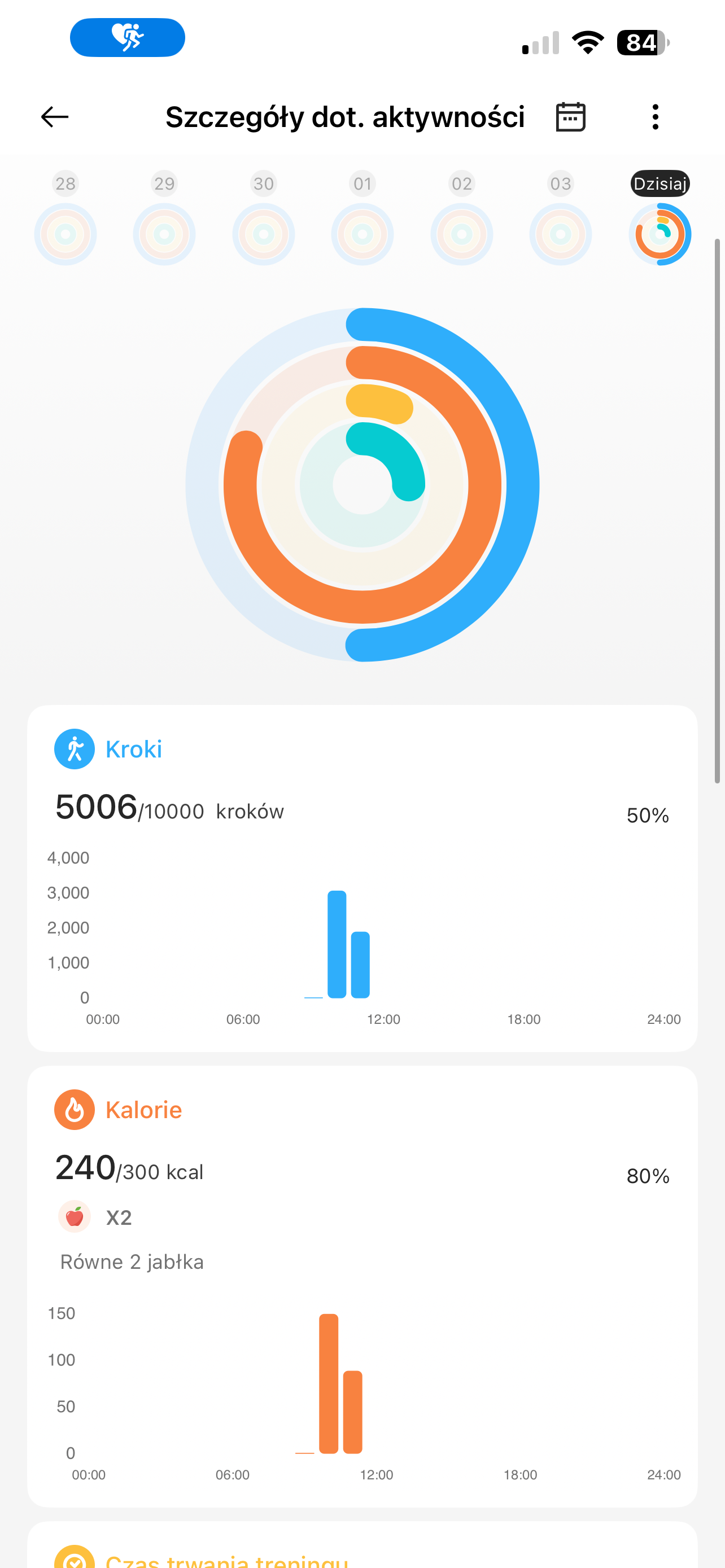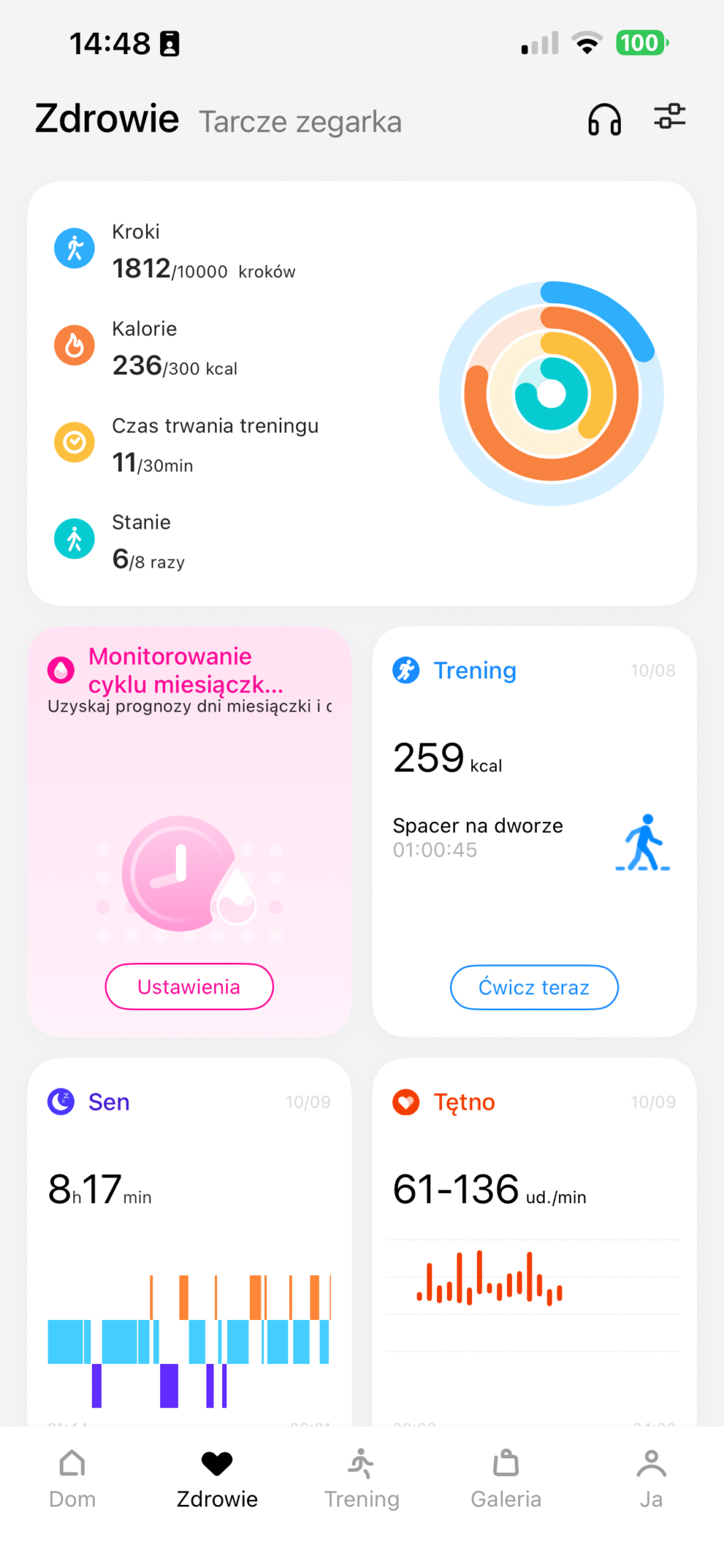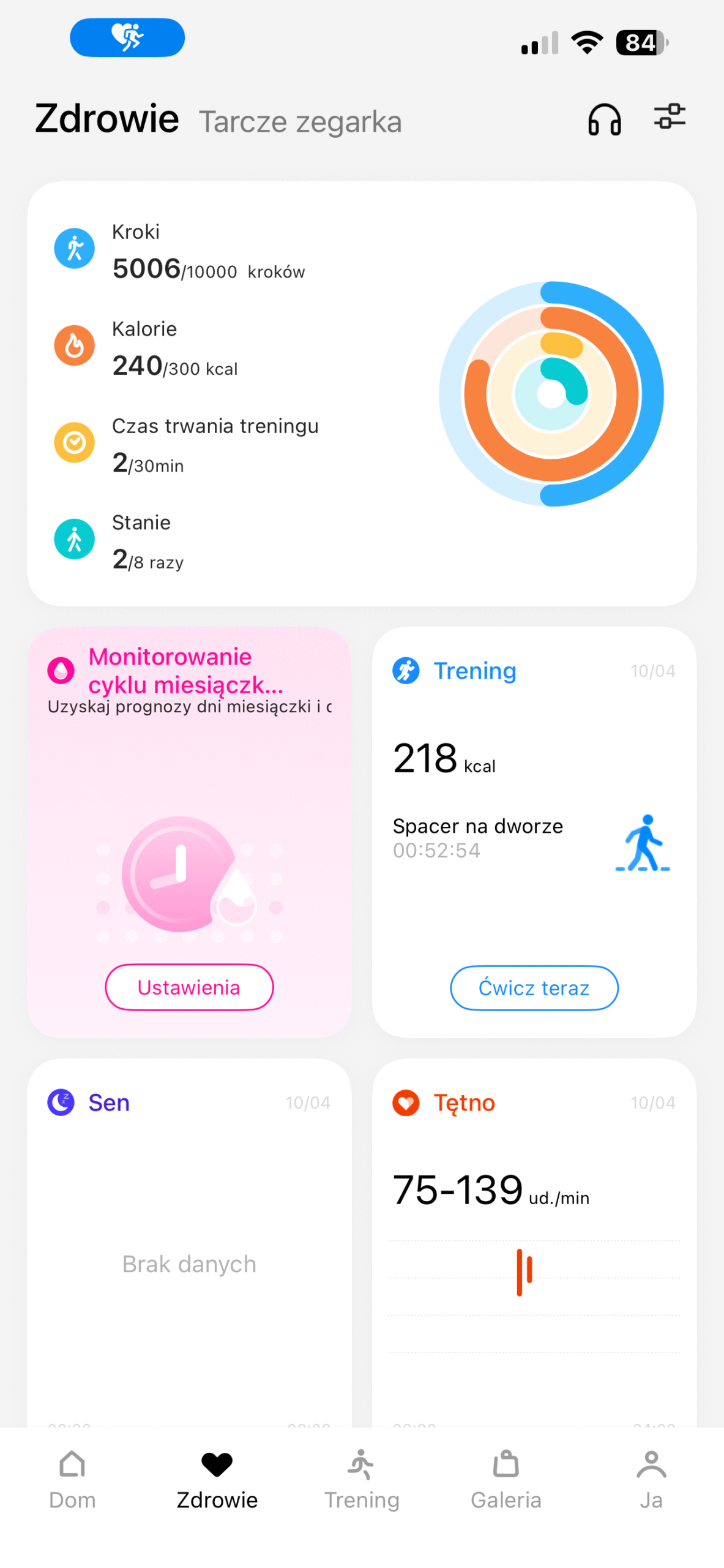 Tu pojawiła się niemała zagwozdka. O ile sam zegarek codziennie udostępniał mi dane dotyczące snu, tak w aplikacji były one… całkowicie niewidoczne. Dane z zegarka nie importowały się do aplikacji przez cały czas posiadania go na testach. Nie wiem, czy to kwestia tego, że korzystałam z niej na iPhonie czy po prostu jakiś inny, wewnętrzny problem. Niemniej nie mogłam dokonać analizy, ponieważ dostęp miałam tylko do snu z danego dnia. Na początku myślałam, że może po tygodniu jakoś się to zaktualizuje. Niestety nic takiego się nie stało, a szkoda.
