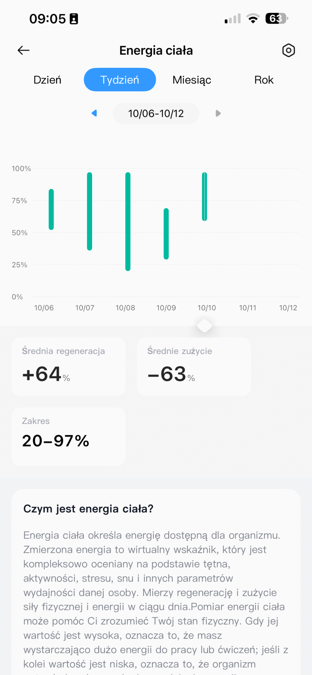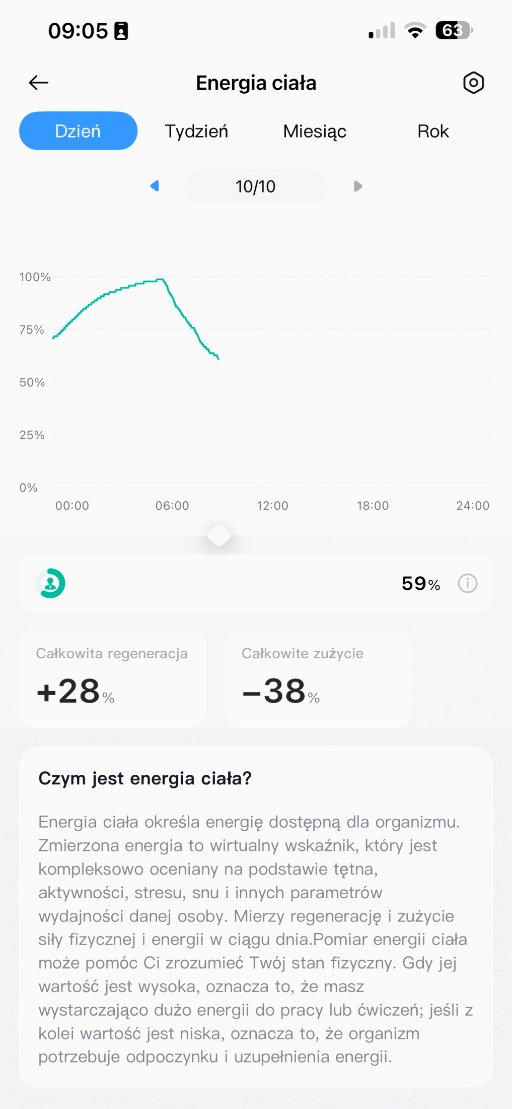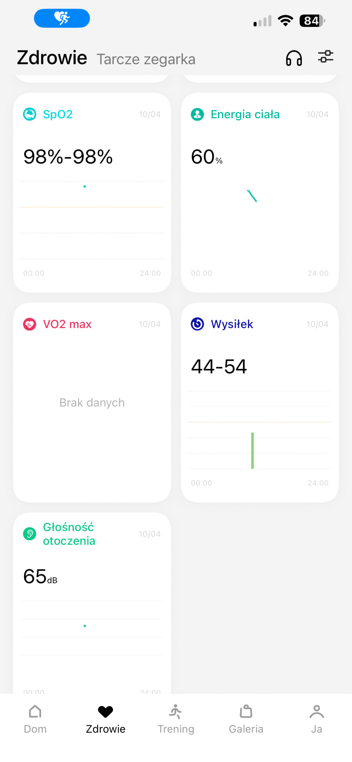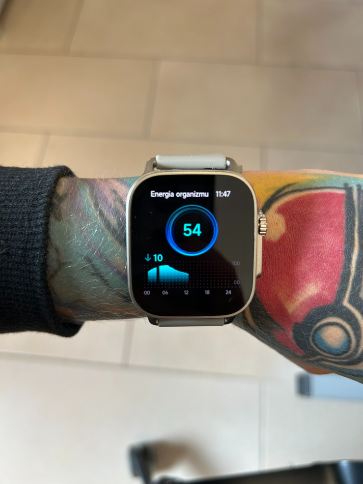 Nie wszystko działa jednak idealnie. Zegarek miewa problemy z rozpoznawaniem drzemek, co spotkałam już w OnePlus Watch 3 43mm. Jak natomiast działa funkcja energii organizmu? A no tak, że zegarek wykorzystuje dane z zebranych pomiarów w ciągu całego dnia (robi to nieustannie), by oszacować, jakie mamy rezerwy energii na pozostałą część dnia. Jeśli zegarek wskazuje wysoki zasób, oznacza to, że do dyspozycji mamy dużo sił na pracę, ćwiczenia i ogólnie życie. Jeśli poziom jest niski – wtedy otrzymujemy powiadomienie o tym, że trzeba odpocząć. Pomiar ten uzupełnia się za pomocą snu czy też drzemki. Myślałam, że padnę ze śmiechu, kiedy po 2 godzinach w pracy zegarek informował mnie, że nie mam już siły. No tak, kto z ludźmi pracuje, ten się w cyrku nie śmieje. Całkowicie się z zegarkiem zgadzam.